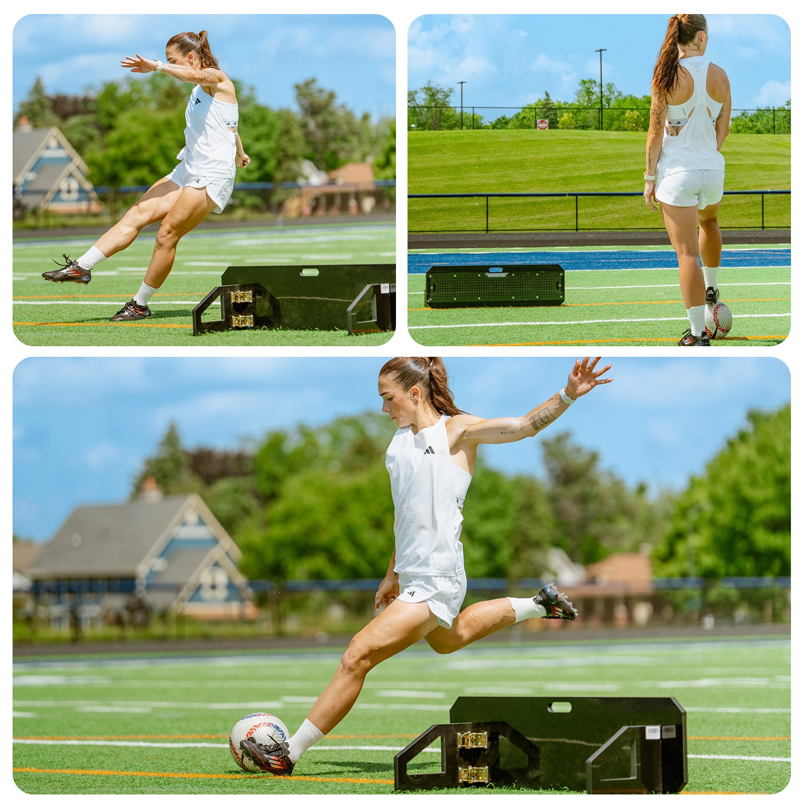 - Durable and Sturdy Construction: Crafted with high-density polyethylene (HDPE) material, this soccer rebounder is built to last. Its heavy-duty design ensures durability, sturdiness, and stability. With its robust build, it can withstand rigorous hits and maintain its performance over time.
